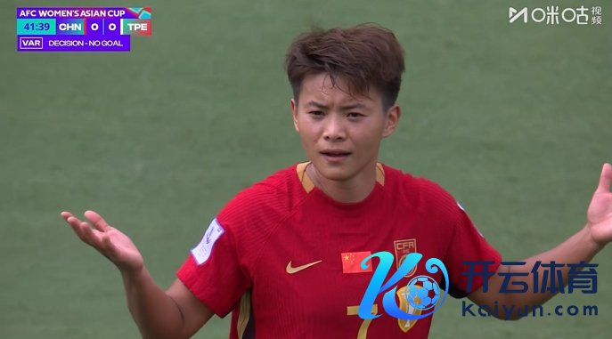 第39分钟王霜头球破门,VAR介入后判定邵子钦越位在先,王霜进球无效。王霜得知进球被吹后无奈示意不明。