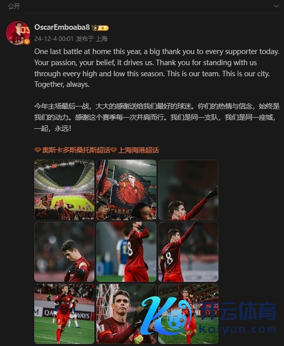 奥斯卡:本年主场终末一战,大大的感谢送给咱们最佳的球迷。你们的体恤与信念,弥远是咱们的能源。感谢这个赛季每一次并肩而行。咱们是团结支队,咱们是团结座城球王会体育信息,悉数,永远!
