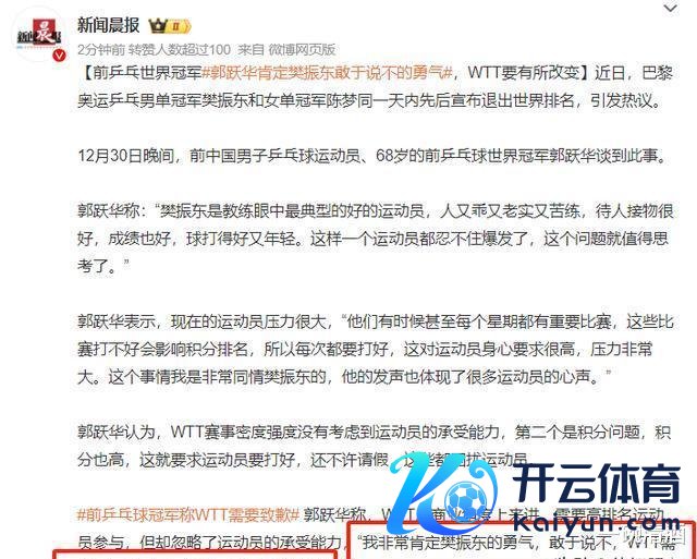 国外乒联如果都不知谈樊振东、陈梦接踵退出天下排行这事儿,那国乒这两大奥运冠军提交的签名文献难不能还能不翼而飞啦?国内媒体但是在络续深挖呢。你瞧,WTT建树4年啦,就只好4个还算判辨的补助商,还全来自中国哦。况且它能发展到如今这般边界,那可多亏了中国市集。像孙颖莎、王楚钦、樊振东、陈梦、马龙这些奥运冠军,影响力杠杠的,帮WTT的交易品牌价值蹭蹭往高潮呢。说白了,WTT天下乒联的运营差未几全靠中国企业和敞开员撑着,成果呢,它倒好,还制定新规来针对中国奥运冠军,这可未便是典型的吃饭砸锅嘛!