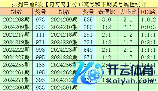 罗列三第2024300期奖号为933,直选奇偶散播为:奇奇奇,该奇偶散播历史上共出现了884次,前100期出现11次。