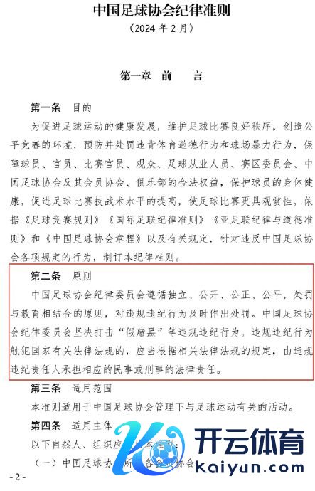 《中国足球协会次序准则》(2024年版)第二条“原则”中有这么的翰墨:中国足球协会次序委员会除名孤独、公开、自制、自制,处罚与栽培相结合的原则,对违规违法步履实时作出处罚。中国足球协会次序委员会坚强打击“假赌黑”等违规违法步履。违规违法步履触犯国度谈判法律限定的,应当证据谈判法律限定的章程,由违规违法拖累东谈主承担相应的民事或刑事的法律拖累。