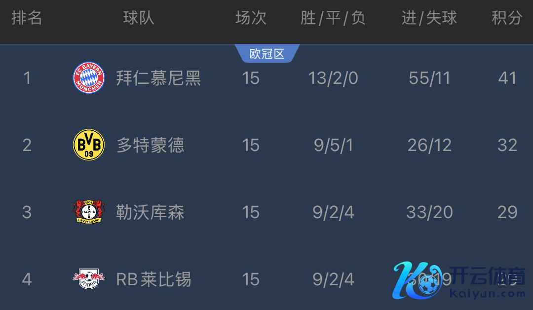 临了再来看德甲,拜仁在第15轮客场作战以4-0大捷海登海姆,本场事后,拜仁15轮13胜2平积41分,排行德甲榜首,多特32分,勒沃库森、莱比锡29分,排行2-4位。显着,在本赛季五大联赛中拜仁的跳动上风最大。拜仁的净胜球达到惊东说念主的44球,场均净胜敌手梗概3球,亦然创造了德甲联赛自1963年创办以来的前15轮净胜球最多的记载。