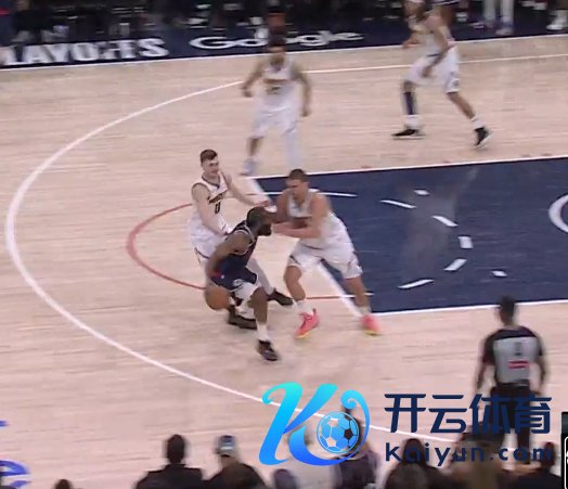 在比赛还剩下1分30秒时,约基奇拉拽哈登,应吹罚约基奇个东谈主犯规。