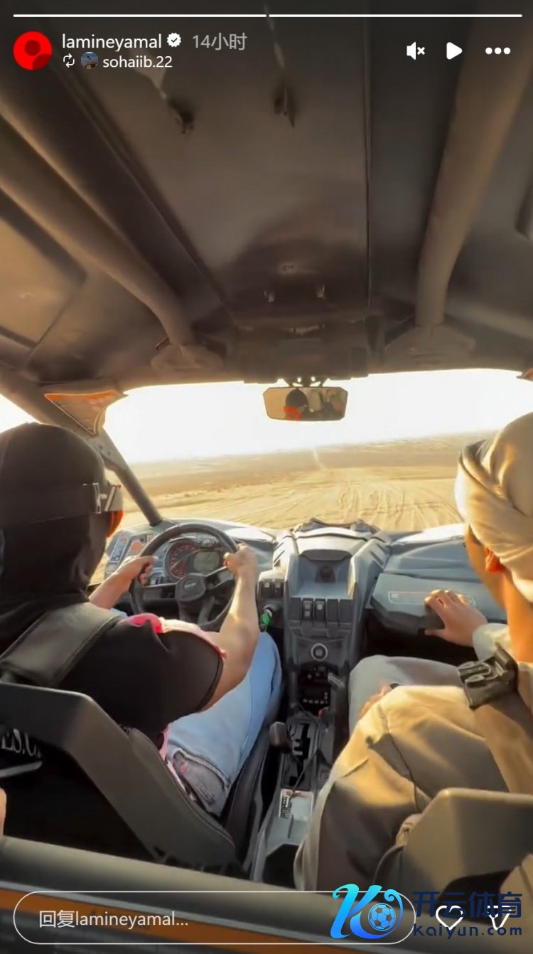 亚马尔正在迪拜度假,他在酬酢媒体上晒出在沙漠中开车的视频,这位小将带领专科护目镜,在当地向导的教授下开着越野车,在沙漠中飞奔。