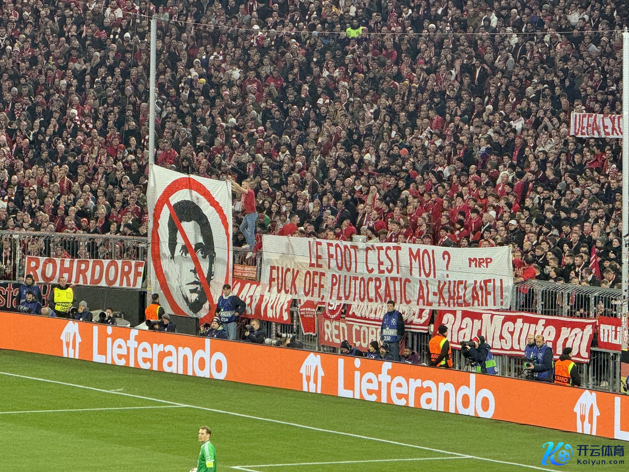 在拜仁欧冠比赛中,安联球场吊挂着针对巴黎圣日耳曼以相配主席纳赛尔的横幅。拜仁的敌手以及敌手的代表在球场内感受到这种立场和口吻的舛错并因此感到被冒犯,拜仁悦目对此深表歉意。